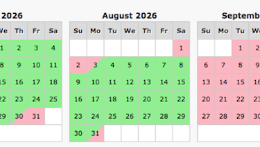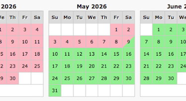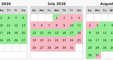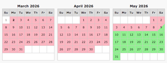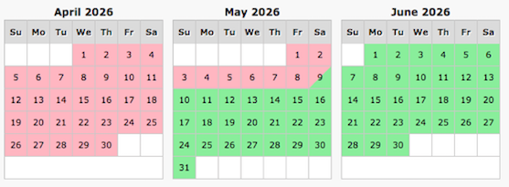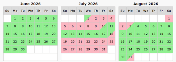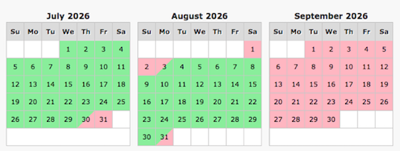 Pink indicates dates are unavailable
