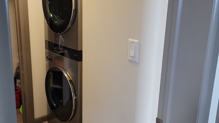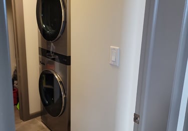 Located in the main storage room is a full size LG washer/Dryer. Other things like Ironing board, vacuum and mop w/bucket can be found there as well.