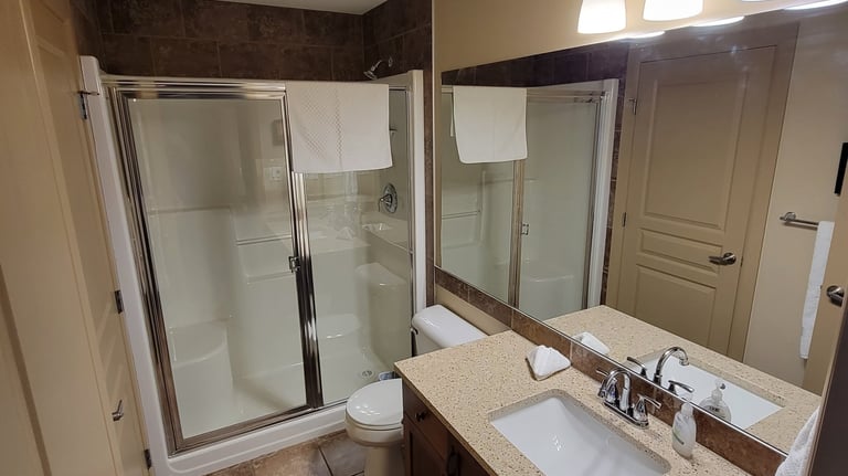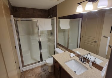 This master bedroom comes with a comfortable King bed, a Walk through closet to your very own ensuite 4pc bathroom. Use the wall mounted 37" TV to relax at night while in bed.